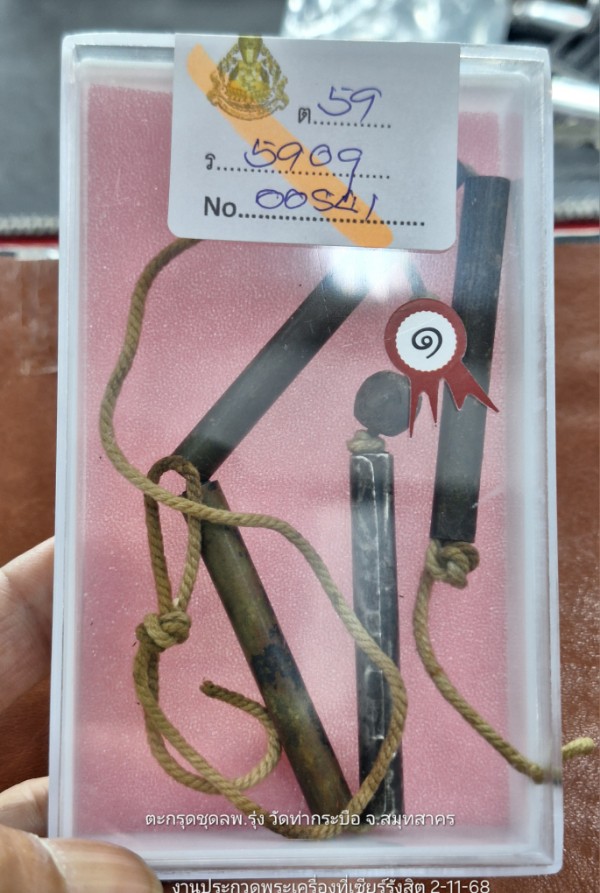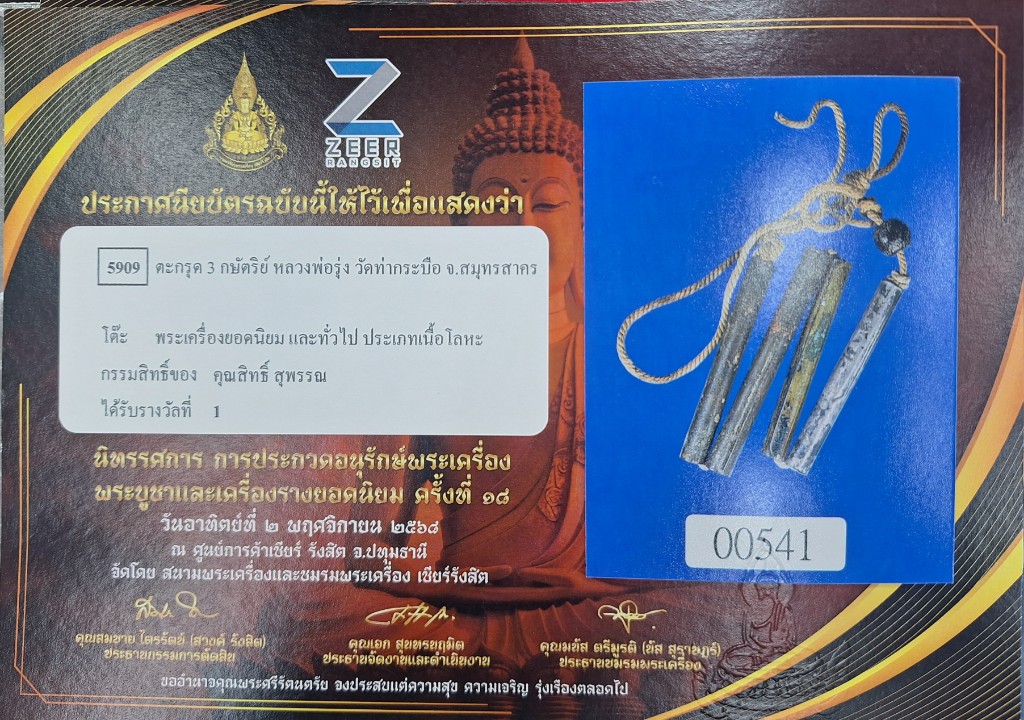 รับประกันพระแท้ตลอดชีพ(3-0) ข้อมูล ตะกรุดชุดหลวงพ่อรุ่ง วัดท่ากระบือ จ.สมุทรสาคร แกนตะกรุดเนื้อ3กษัตริย์(เนื้อเงิน1ดอก,เนื้อฝาบาตร1ดอก,เนื้อทองแดง2ดอก)และลูกสะกดเล็กหรือลูกกระดอนสะท้อนกลับเคล็ด:สิ่งเลวร้ายกลับร้ายกลายเป็นดี)พุทธคุณเด่นด้านเมตตรามหานิยมและค้าขายคล่องตัวและแก้คุณไสย์ปลุกเสกเดียวโดยเถราจารย์เกจิอาจารย์ยุคเก่าแห่งเมืองสมุทรสาคร สร้างช่วงพศ2480-2490 @หมายเหตุ:ส่งเข้างานประกวดพระเครื่องที่ศูนย์พระเครื่องเซียร์รังสิตณ.วันที่ 2-11-68ผลติดรังวัลที่๑(มีโบว์ติดกล่อง)